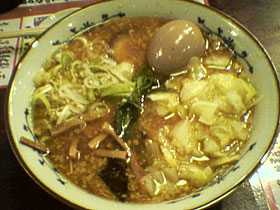 いやぁ。旨い!辛い!カップ麺の「辛!ラーメン(真っ赤なやつね)」を思い出します。最近「ぼんしゃん」に飽き飽き(あの化調っぷりが後でツライのよ)して来てたのでこれは新鮮な旨さですね。お好みでキャベツトッピングが無料で追加できますが、これは「つけちゃん」に入ってるクタクタのキャベツと同じものですね。箸休めに丁度良いので入れるのをお勧めしますよ。