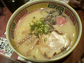 スープは豚臭い中にも唐辛子のおかげ?で、「ぼんしゃん」よりもこうばしい香りがします。思いっきし辛いんですけど、ベースが「ぼんしゃん」だけあって、濃厚なコクがあり、旨いぞおりゃ!カプサイシン効果で化調が良く分からなくなるメリットもあり。心なしか、味玉もぼんしゃんよりもスープに合ってる感じがしました。